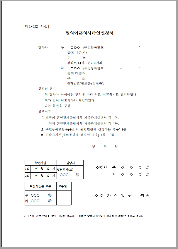 협의 이혼서류 양식 다운로드
