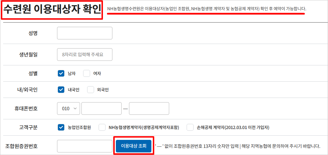 농협수련원 예약 홈페이지