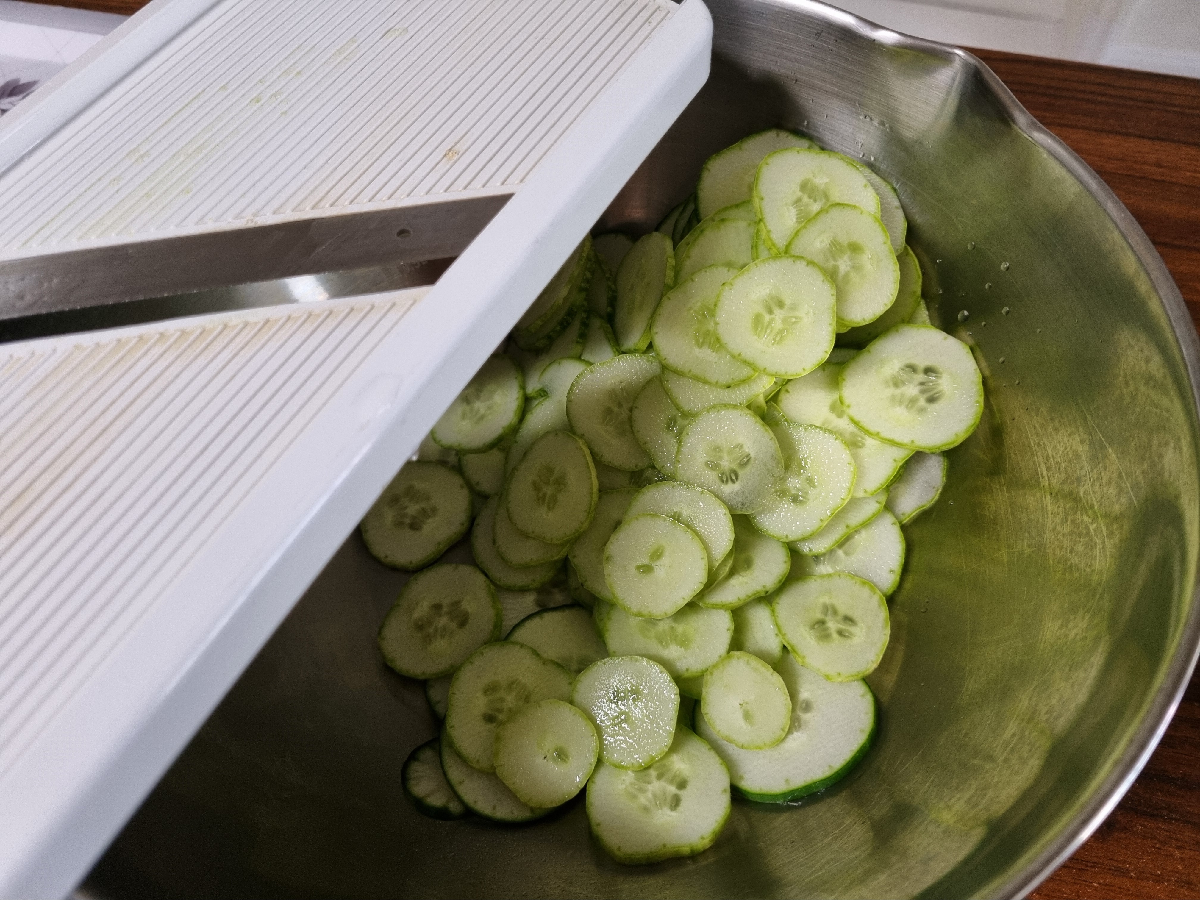 2) 오이를 채칼을 통해 얇게 잘라 줍니다.
